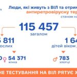 Антиретровірусну терапію в Україні отримує 115 457 людей, які живуть з ВІЛ, — дані на 1.10.2025